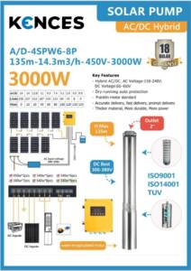 Pompa air ini menggunakan teknologi Hybrid AC/DC Controller, yang memungkinkan sistem bekerja dengan dua sumber energi.